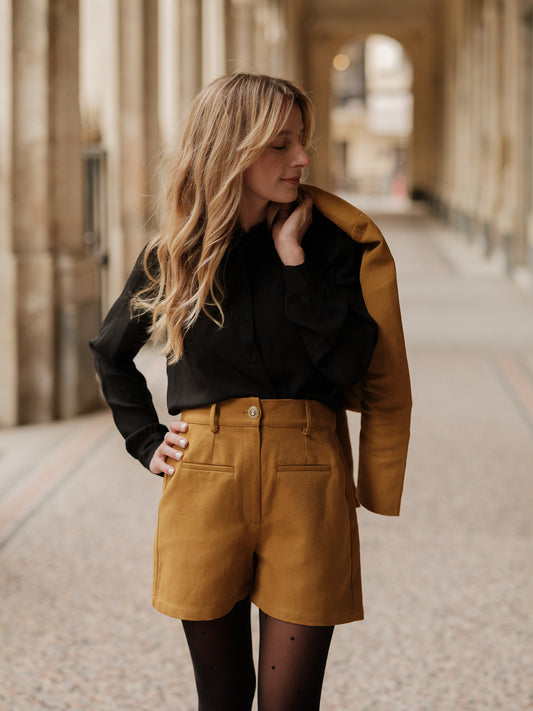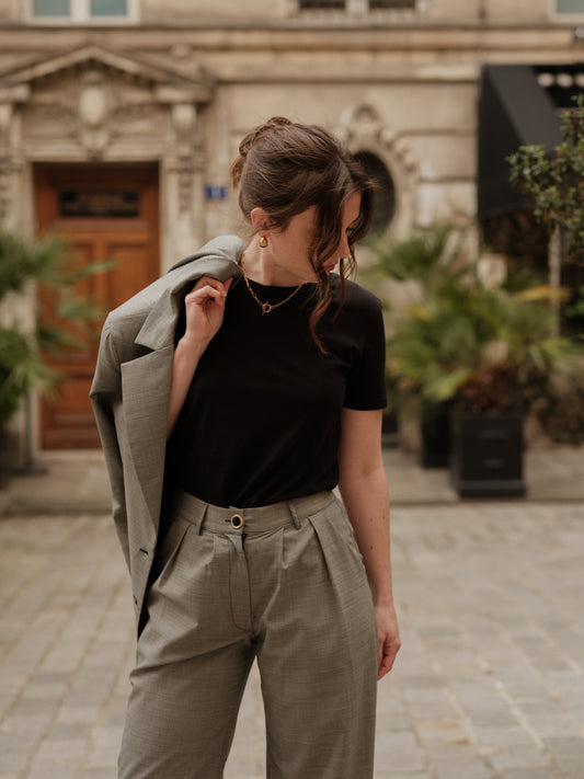 Celle qu’on ressent quand une coupe tombe parfaitement, qu’un tissu épouse nos gestes, qu’un vêtement devient une armure qui nous renforce. Nous créons des vêtements pour que chaque femme se sente affirmée, forte et fière d’être elle-même.